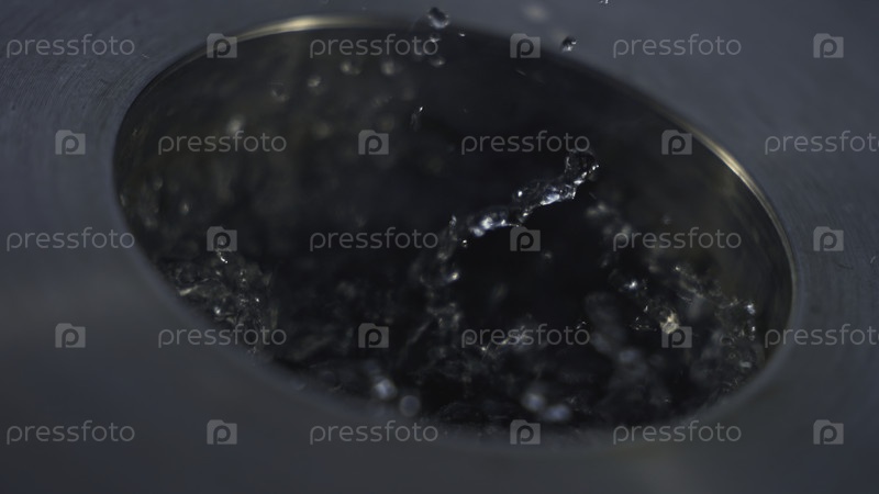 Близкий снимок бурлящей воды из металлического контейнера. Снимок запаса. Кипящая вода в металлическом контейнере с отверстием. Специальный контейнер для кипения воды