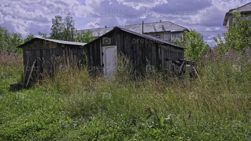 Заброшенные дома на фоне жилых зданий. Клип. Заброшенные здания в деревне на фоне жилых многоэтажных домов. Контраст бедного района с заброшенными и жилыми зданиями