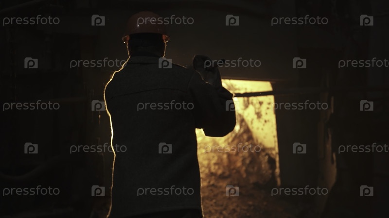 Тщательный сталелитейник следит за потоком расплавленного металла из печи, подчеркивая сложный промышленный процесс