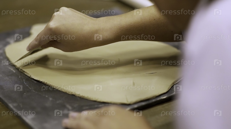 Руки умело создают красивое искусство из глины в творческой мастерской для обучения