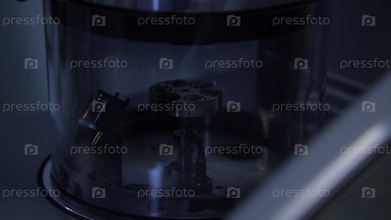 Работа в темной лаборатории. Стоковые кадры. Изысканное оборудование для исследования лекарственных средств и химических элементов. Высокое качество 4k-записи