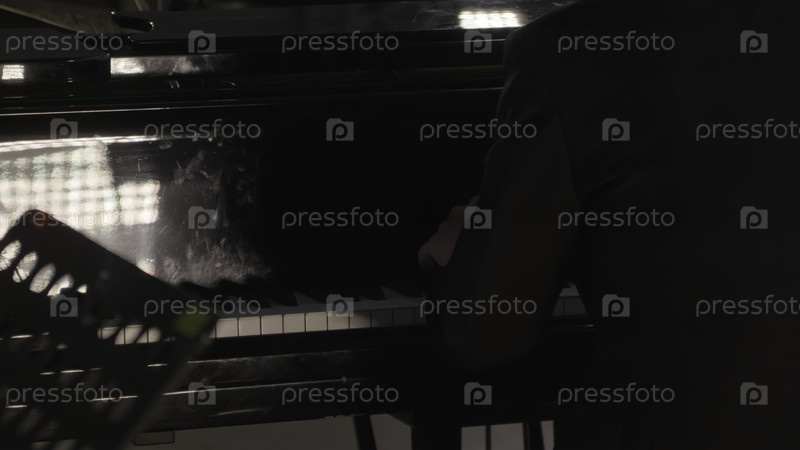 Музыкант умело играет на рояле перед захваченной аудиторией в элегантной обстановке
