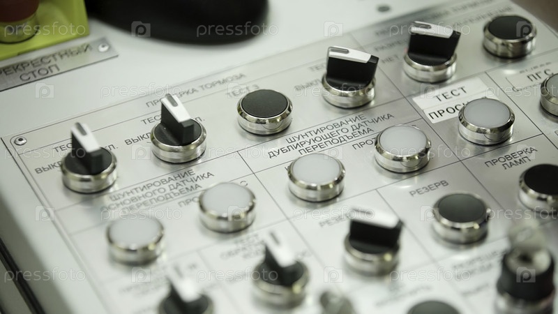 Подробный вид с близкого расстояния панели управления, демонстрирующей различные ручки и переключатели, используемые в медиа-технологии