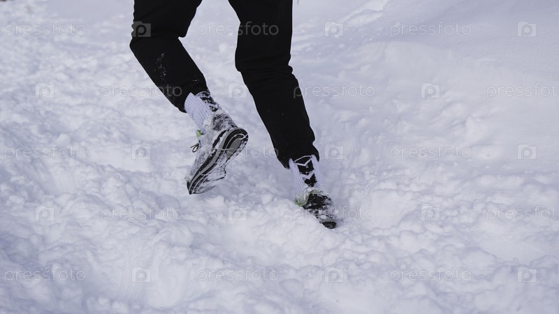 Берн, Швейцария - 20 января 2023 года: Мужчина бежит зимний марафон Клип.Мужчина бегает вверх по склону на зимнем марафоне мужчина поднимается с горки со снегом на гонке