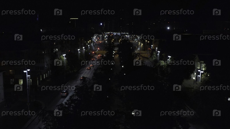 Вид с вершины темного города ночью со светящимися фонарями. Скриншоты. Прекрасный вид на шоссе с автомобилями и фонарями. Ночная дорога в центре современного города с фонарями