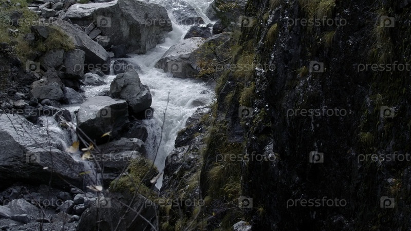 Мощный водопад в национальном парке, Исландия.Креативное движение холодной горной реки осенним днем