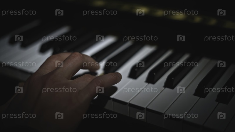 Близкий план игры на фортепиано. СМИ. Пальцы грациозно играют на клавишах пианино. Прекрасная игра клавиатуры для фортепиано