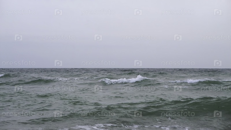 Чудесно спокойный вид на океанские волны, которые мягко сливаются с нежным серым небом, вызывая глубокое спокойствие и мир