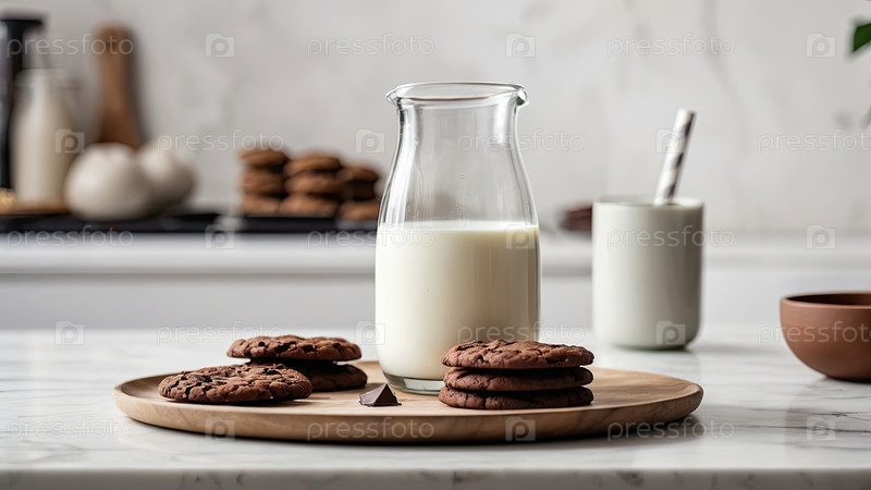 Стеклянная бутылка с молоком, хрустящие шоколадные печенье, выбор коровьего, овсяного, соевого, кокосового, миндального или рисового молока, опция здорового образа жизни