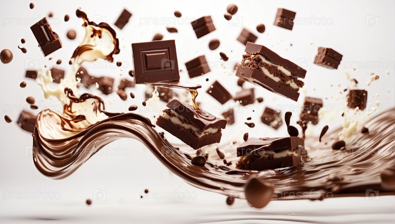 Шоколадное молоко с летающими кубиками темного шоколада, насыщенный какао-плейш, вдохновение для десертов и закусок