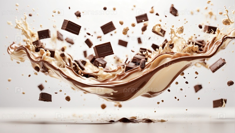 Вихрь шоколада и ванильного молока, кусочки летающего шоколада, снисходительный десерт, летняя перекусная атмосфера