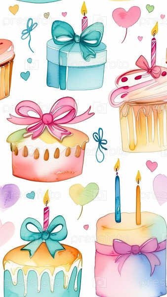 Пастельные торты на день рождения со свечами, акварельный вертикальный рисунок, праздничный фон сладостей