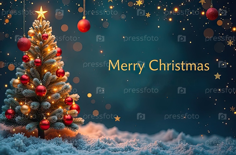 Рождественская открытка с кописпейсом на праздничном фоне с елкой и блеском