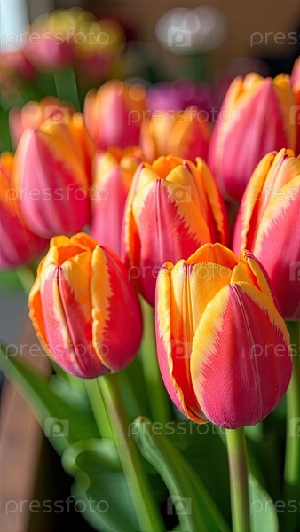Красочные букеты тюльпанов в цветочном магазине - свежерезанные цветы на складе и стеллажи для продажи, доставка к празднику. весна, 8 марта, женский день, день рождения. ИИ генерируется