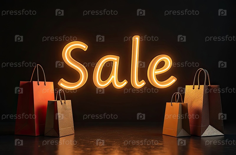 Продажа на черном фоне. витрина магазина для Черной пятницы, скидки, сумки с покупками, созданный ИИ