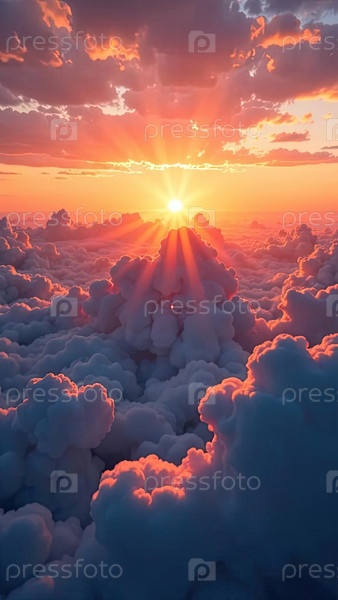 Драматический закат на фоне неба, светящиеся облака, красочный градиент, идеальный атмосферный фон