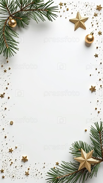 Приглашение на Рождественскую и новогоднюю вечеринку с рамкой рождественского декора с местом для текста на белом фоне