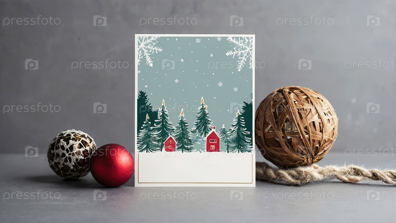 Приглашение на Рождественскую и новогоднюю вечеринку с рамкой рождественского декора с местом для текста