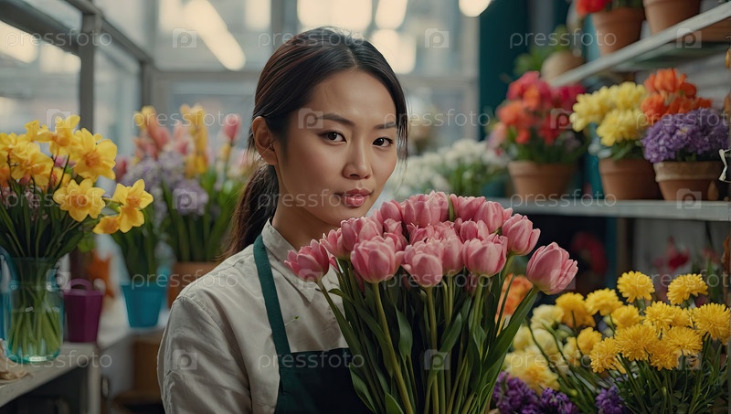 Азиатская флористка устраивает желтые пионы, кучу тюльпанов и роз на Чусеок, середину осени и китайский Новый год