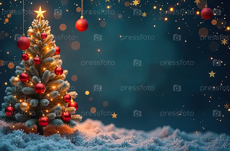 Рождественская открытка с кописпейсом на праздничном фоне с елкой и блеском