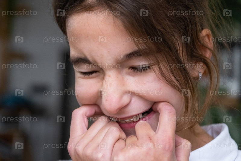 Процесс установки ортодонтической пластины, девочка 9 лет, детское коррекционное устройство для выравнивания зубов