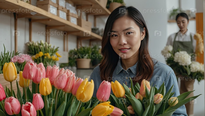 Азиатская флористка устраивает красочные букеты тюльпанов, лилий и пиона для свадьбы, Дня родителей и фестиваля Qixi в Китае и Корее