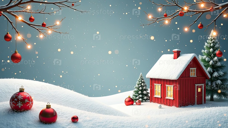 Рождественская открытка с кописпейсом на праздничном фоне с елкой и блеском