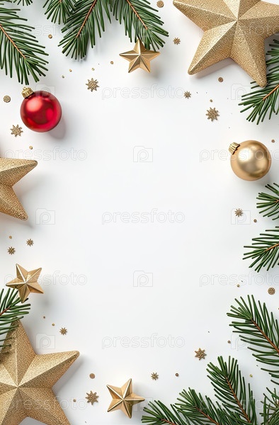Приглашение на Рождественскую и новогоднюю вечеринку с рамкой рождественского декора с местом для текста на белом фоне