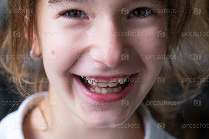 Улыбающийся ребенок после использования ортодонтического аппарата, исправленные зубы и здоровая внешность, успех педиатрической пластины