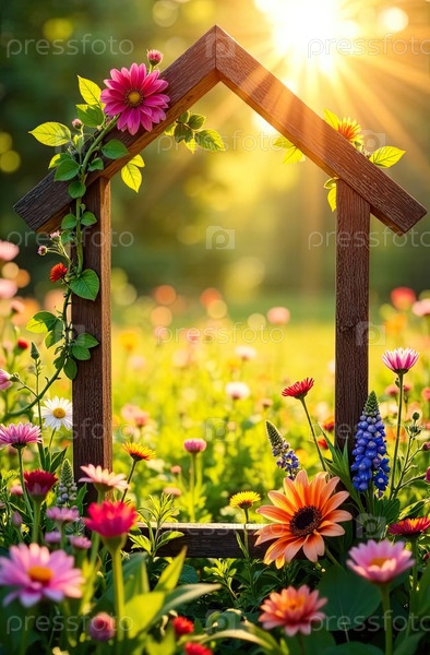 Крошечный экологический каркасный дом теплица в солнечных лучах, с летними цветами на солнечном фоне в поле. недвижимость, дача, летний дом, ипотека, страхование, бронирование, строительство, изоляция. ИИ генерируется