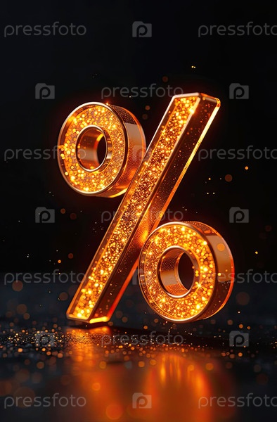 Неон светящийся золотой процентный знак на черном фоне. витрина магазина для Черной пятницы, распродажи, скидки, сумки для покупок. баннер, флаер. AI generated