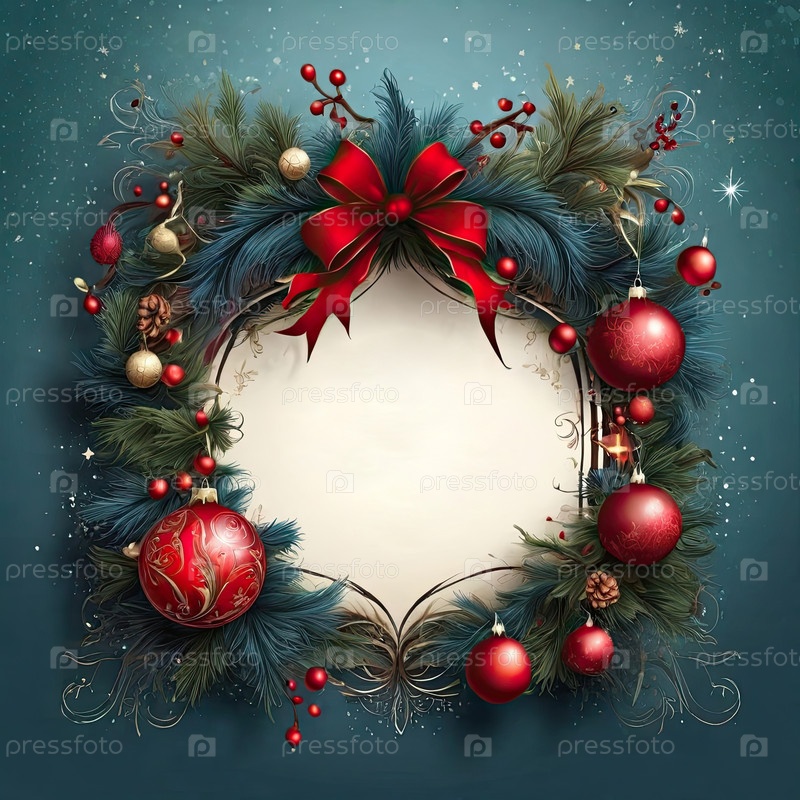 Приглашение на Рождественскую и новогоднюю вечеринку с рамкой рождественского декора с местом для текста