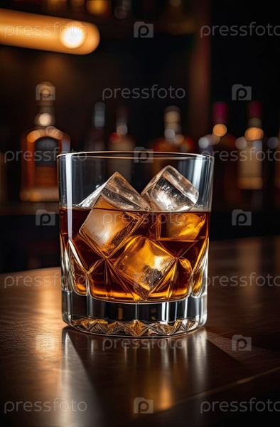 Близкий выбор виски с льдом, атмосфера бара, элегантный фон ночной жизни, высококачественные напитки и дистиллированные спирты, пространство для копирования