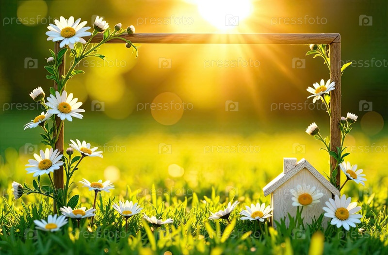 Летняя ромашка в солнечных лучах с пространством для текста на фоне летнего поля