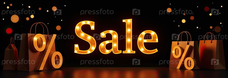 Продажа на черном фоне. витрина магазина для Черной пятницы, скидки, сумки с покупками, созданный ИИ