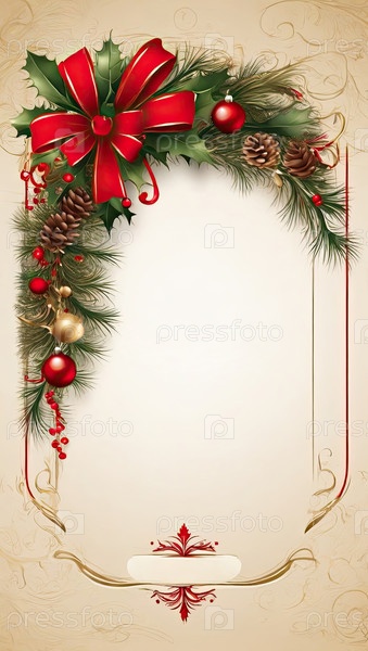 Приглашение на Рождественскую и новогоднюю вечеринку с рамкой рождественского декора с местом для текста
