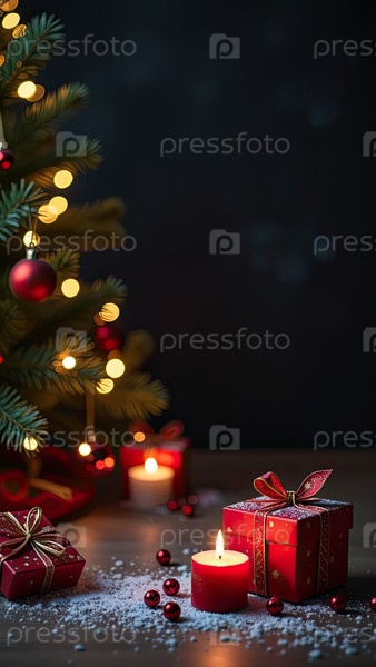 Приглашение на рождественскую открытку с пространством для текста в рамке на черном фоне со светящейся елкой и блеском