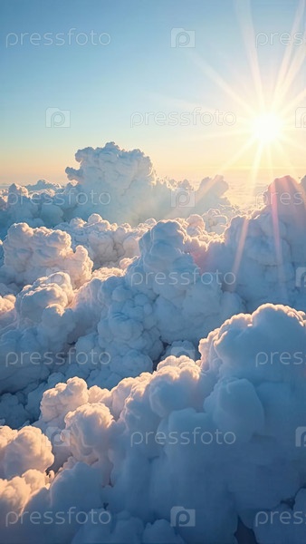 Голубое небо и облака, солнце на горизонте, минималистский воздушный фон, идеально подходит для веб-сайтов или печати