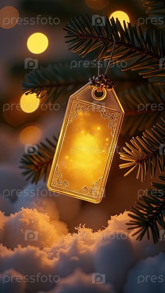 Светящийся золотой пустой ценовой знак с блеском на рождественском фоне. флаер для Черной пятницы, новогодняя этикетка, Рождественская распродажа, скидки. ИИ генерируется