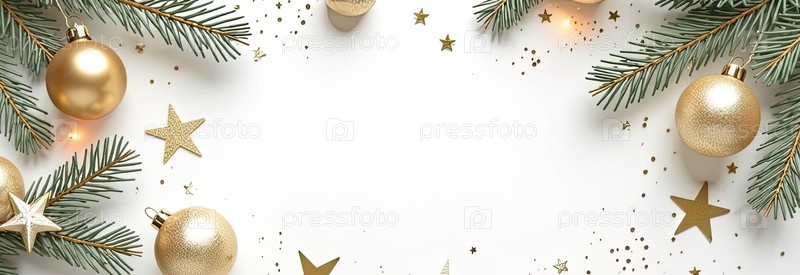 Приглашение на Рождественскую и новогоднюю вечеринку с рамкой рождественского декора с местом для текста на белом фоне