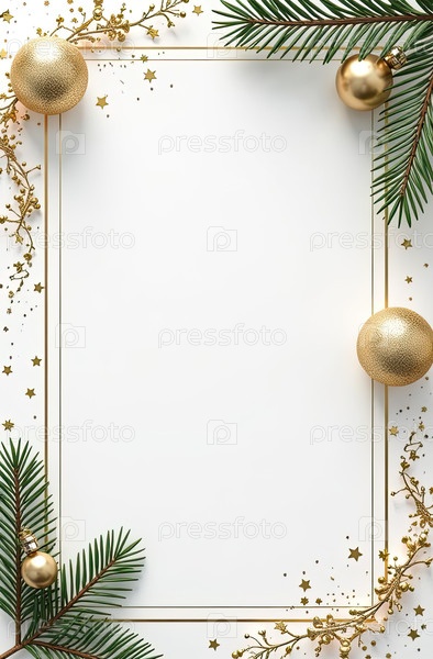 Приглашение на Рождественскую и новогоднюю вечеринку с рамкой рождественского декора с местом для текста на белом фоне