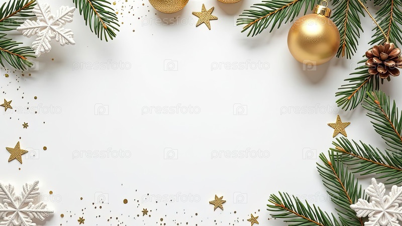 Приглашение на Рождественскую и новогоднюю вечеринку с рамкой рождественского декора с местом для текста на белом фоне