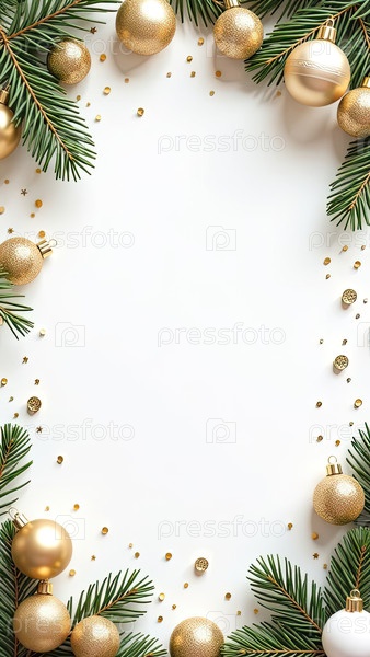 Приглашение на Рождественскую и новогоднюю вечеринку с рамкой рождественского декора с местом для текста на белом фоне