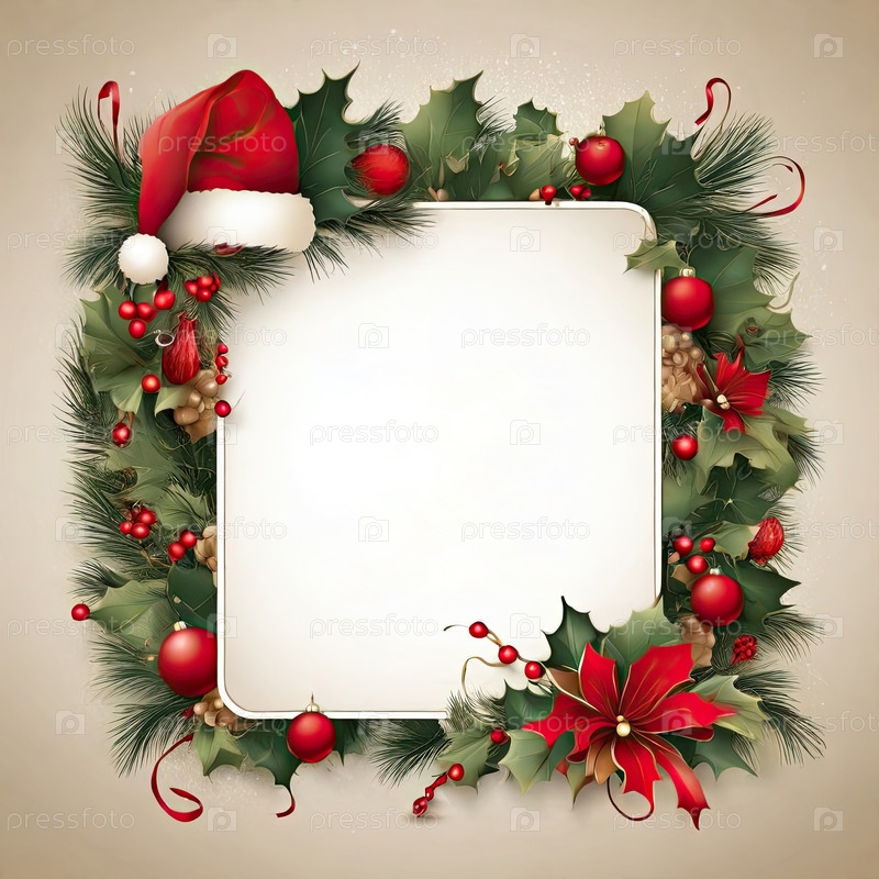 Приглашение на Рождественскую и новогоднюю вечеринку с рамкой рождественского декора с местом для текста