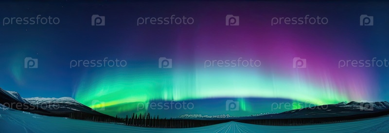 Северные огни в небе над северной снежной горной местностью зимой