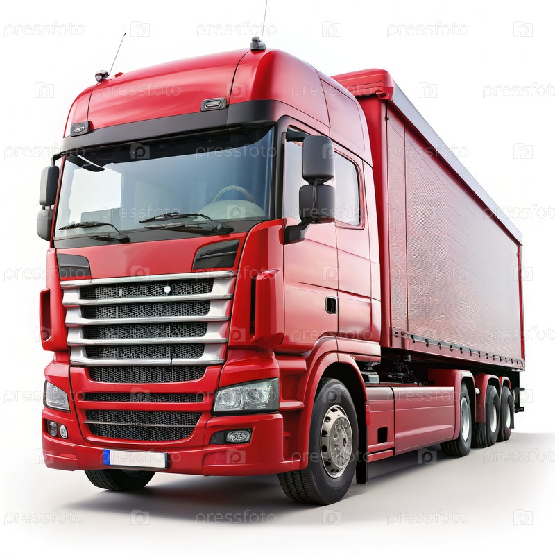 Полугрузовик с трейлером, припаркованным на белом фоне
