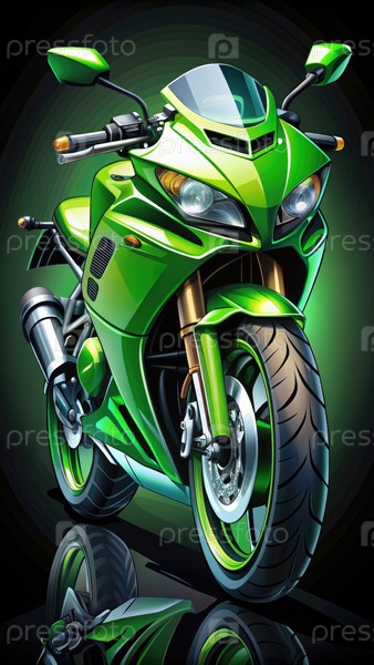 Вибрирующий зеленый спортивный мотоцикл карикатурная иллюстрация. генеративное ИИ