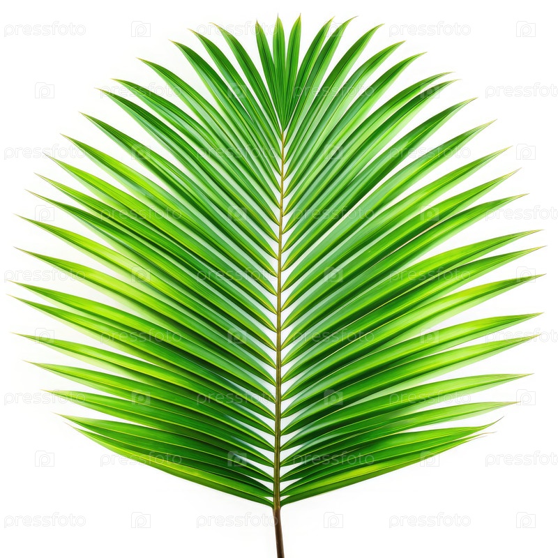 Одинокий зеленый пальмовый лист, изолированный на белом фоне