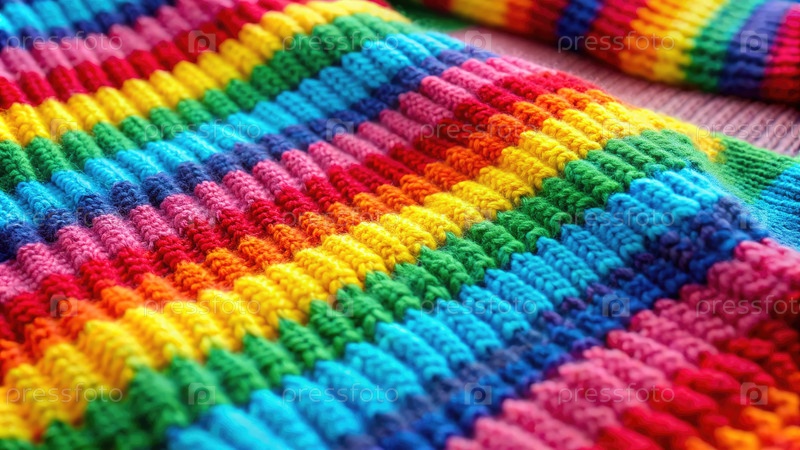 Близость к яркому радужному полосатому трикотажному свитеру. генеративный ИИ