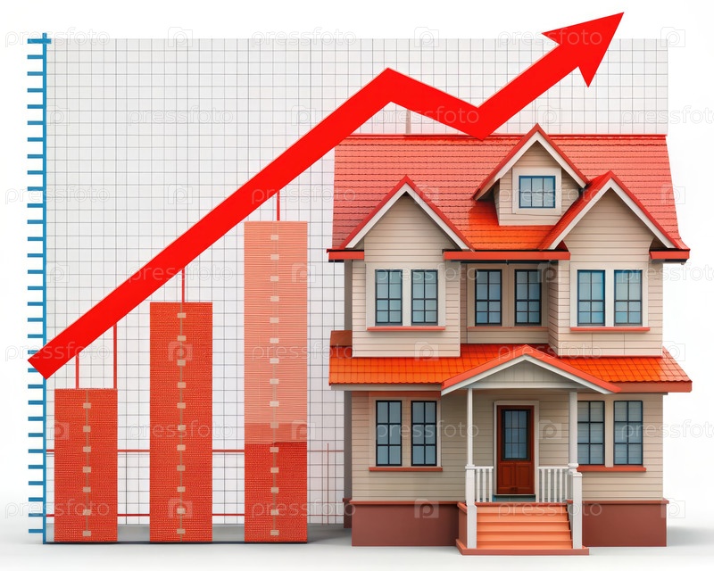 Дом с красной стрелкой, указывающей вверх. генеративный ИИ